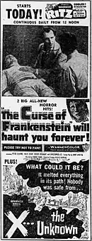 Advertisement from 1957 for The Curse of Frankenstein and co-feature, X the Unknown.
