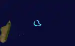 In addition to the storms classified by the MFR, the JTWC tracked two storms in November. The first, classified as Tropical Cyclone 01S, formed on November 1,[2] about halfway between Diego Garcia and Sumatra.[4] It formed as a cyclone pair, along with a tropical storm in the northern Indian Ocean that struck India.[5] The storm moved west-southwestward, passing near Diego Garcia on November 3. The JTWC assessed peak 1 minute winds of 105 km/h (65 mph) on November 7, although the storm subsequently weakened and dissipated on November 9.[4] The other unofficial storm developed on November 24 near the eastern coast of Mozambique, classified as Tropical Cyclone 02S.[2] Moving to the southwest, it quickly intensified to reach winds of 75 km/h (47 mph). Early on November 25, the storm moved ashore near Quirimbas National Park in the northeastern portion of Mozambique, and it dissipated a day later.[6]