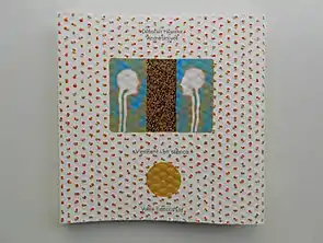Comme un morceau de nuit, découpé dans son étoffe (Like a swatch of night cut out of its own cloth), preface by Dominique Sorrente, Cheyne publisher, coll. Grise, Chambon-sur-Lignon, France, 2010. Silence. First it's a cloud of apricot trees in flower, yellow or ivory, like a thousand little butterflies sown in the fresh grass, moving in the glow of lamplight when night ascends. Fragments of dreams. You can see the red sun setting on the foliage, like an enormous mass of incandescent steel. Then there were the trees a little farther off, straightening their fragile frames, the woolen blue pincushion flower like an eye and that tumult of milk in the deep stone, and finally the moan of the air beaten by a flock of blue woodpigeons – a silken challenge perhaps, or one of crackled leather. "Kaimamiru/Glimpse" in Like a swatch of night cut out of its own cloth, translated into English by Jacob Bromberg (2013)[3]
