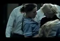 This video was generally well received in the media. For example, Musique.evous said: "Its atmosphere is consistent with the single and the universe of its performer: cold, careful and erotic. (...) The production is impeccable and the greatest attention was paid to lighting, the texture of the bodies and the special effects".[28] Many critics have noticed that the video was "erotic" and "provocative", and some have thought it was inspired by Luc Besson's film The Fifth Element (futuristic atmosphere, red hair, body covered with strips)[29] or Le Parfum.[30] According to La Meuse, gay scenes – including two soldiers who kiss and undress each other[31] – would be "a wink to the fascination that Farmer has always exerted on the gay public".[32] Royer said this video is "peppered with special effects worthy of the early career [of Farmer]"[33] and conveys a message "which invites its listeners to come out of coma where they languish sex to engage in sexual intercourses without taboo. (...) The singer achieves the challenge of updating of the message of "Libertine" without giving the feeling of repetition."[34]