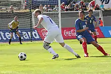 Dóra (nearest the ball) versus Serbia in 2009