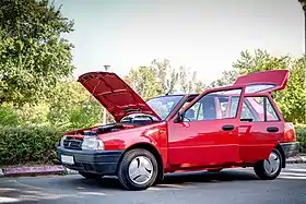 The Dacia Nova was the first in-house developed Dacia model and it was intended to complement the Renault 12-based "Berlina" (Sedan) and "Break" (Estate) range, with a small liftback/fastback. Work for this model had started in the 1980s, this being the reason why the car looked outdated from the time it first left the factory, in 1995.[1] The next year, the more modern-looking and more popular, facelifted version was introduced.