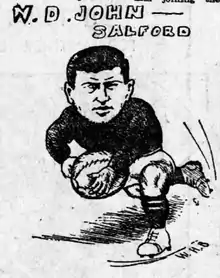W. David "Dai" John (birth unknown – death unknown) was a Welsh rugby union and professional rugby league footballer who played in the 1900s and 1910s. He played club level rugby union (RU) for Penygraig RFC, as a half-back, and representative level rugby league (RL) for Wales, and at club level for Salford, as a fullback or stand-off, i.e. number 1 or, 6.[1][2]