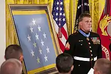3. CNN Wire Staff (September 16, 2011). "Marinene receives Medal of Honor at White House". CNN. Archived from the original on July 28, 2013. Retrieved June 3, 2013. "I know that you've grappled with the grief of that day, that you have said that your efforts were somehow a failure because your teammates didn't come home," Obama told Dakota Meyer, who became the first living Marine to be recognized with the nation's highest military honor for actions in Afghanistan or Iraq. {{cite news}}: |author= has generic name (help)