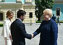 - ↑ "Lithuania's first female president sworn in for second term". EuroNews. 12 July 2014. Archived from the original on 1 April 2019. Retrieved 13 July 2014.