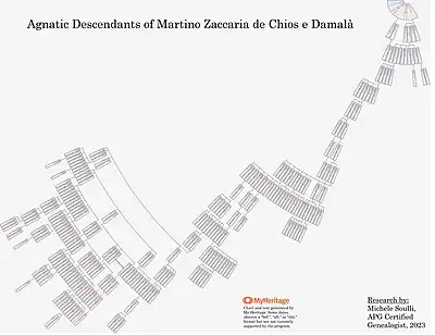 - ↑ https://commons.wikimedia.org/wiki/File:Agnatic_Descendants_of_Martino_Zaccaria_de_Chios_e_Damal%C3%A0.jpg Agnatic descendants of Martino Zaccaria de Chios e Damalà based on the research of Michele Soulli, AGP accredited genealogist, 2023.