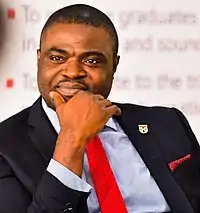 Damilola Sunday Olawuyi, SAN, FCIArb, is an international jurist, professor of law, arbitrator, author and policy consultant, with expertise in petroleum, mining, energy and environmental law.[1] He is the Deputy Vice Chancellor of Afe Babalola University, Ado Ekiti, Nigeria.[2] Professor Olawuyi was promoted to the rank of Full Professor of Law at the age of 32 years, becoming one of the youngest full professors of law in Nigerian history.[3] He became a Senior Advocate of Nigeria (Queen's Counsel eqv.) in 2020, aged thirty-seven, becoming the youngest academic ever elevated to the rank of a senior advocate of Nigeria.[4][5][6]