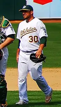 In 2008, he made 29 starts for the Athletics, the most of his career. His record was 9–9 with a 4.34 ERA. He also gave up 27 four-pitch walks, the most in the majors.[7]