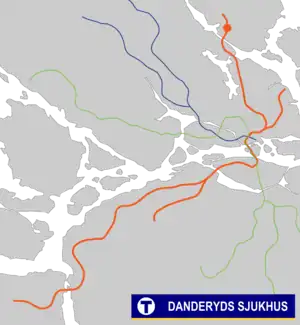 Danderyds sjukhus is a metro station in suburban Danderyd Municipality, north of Stockholm, Sweden.