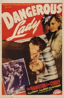 Dangerous Lady is a 1941 American crime film directed by Bernard B. Ray and written by Jack Natteford. The film stars Neil Hamilton, June Storey, Douglas Fowley, Evelyn Brent, Greta Granstedt and Malcolm "Bud" McTaggart. It was released on September 12, 1941 by Producers Releasing Corporation.[1][2][3]