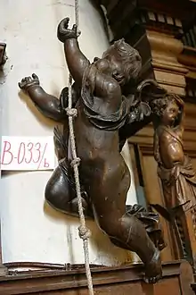 He received a major commission for sculptures in the St. Peter in Chains Church in Beringen, Belgium pursuant to a contract signed in 1686.[3] The Baroque paneling, altars and at least three of the confessionals in the church in Beringen were produced by van Vlierden in collaboration with cabinetmaker Tillman Janssens from Hasselt. Three of the four confessionals can be attributed with certainty to van Vlierden on the basis of stylistic similarities with the confessionals that he made for the Dominican church in Maastricht (now in the Basilica of Saint Servatius). The facial expressions and the arrangement of the figures point in the direction of van Vlierden. One confessional in the northern transept is probably the work of the eminent Antwerp sculptor Artus Quellinus II, given the similarity with the design drawn by Artus Quellinus II. The sculpture of the Holy Sepulchre in the north aisle of the church can also be attributed with certainty to van Vlierden. The main altar displays certain characteristics of van Vlierden's expressive forms. However, it cannot be attributed to him with certainty. The execution of the pulpit is certainly the work of another, less skilled sculptor.[1]