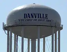 Danville, Kentucky Water Tower viewed from the north. Features the motto "Quite Simply the Nicest Town"