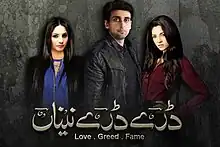 Daray Daray Naina (or spelled as Dare Dare Naina) (Urdu: ڈرے ڈرے نیناں) is a 2012 Pakistani drama serial broadcasting on A-Plus Entertainment every Tuesday.[1] The serial is written by K Rehman and directed by Dilawar Malik, starring Babar Ali, Sami Khan, Neelam Munir, Mehmood Aslam, Zhalay Sarhadi and Shahood Alvi. It was first aired on 6 November 2012.