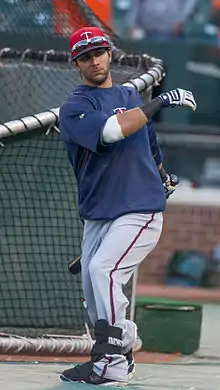 On February 9, 2012, he was claimed off waivers by the Minnesota Twins.[4] He was assigned to Double-A New Britain, where he was the Opening Day left fielder. He earned his first major league hit and RBI on May 11, 2012.[5] He hit his first major league home run on June 27, 2012.[6]