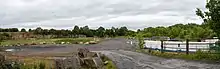 The 6-mile (10 km) Merrybent Railway[7] was built to convey copper, lead and limestone for the Merrybent and Middleton Tyas Mining and Smelting Company.[30] The branch line was authorised by an act of Parliament in 1866, opened in 1870 but it closed in 1878 due to financial difficulties.[31][32] The NER purchased the line in 1890[note 2] and re-opened it soon afterwards. It continued to forward aggregate from the quarries around Barton until 1950 when it was closed for the final time.[34] A station and platform were provided at Barton for the use of non-aggregate goods workings,[35] and although intended for eventual use by passengers, the station at Barton never sold a ticket.[36] The trackbed of the former railway was adapted into the northern carriageway of the A1(M) bypass around Darlington in 1965 with the defunct quarry at Barton being used as a motorway interchange.[37]