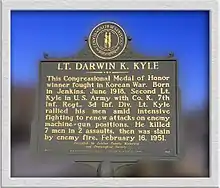 - ↑ ""DARWIN K. KYLE" entry". Medal of Honor recipients: Korean War. United States Army Center of Military History. June 8, 2009. Archived from the original on 2009-03-10. Retrieved 2007-12-31.