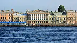 ![]() Rumyantsev house (44) is centermost, located on the English Embankment in St. Petersburg. It now houses a branch of the State Museum of the History of Saint Petersburg. | |