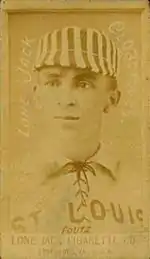 David Luther Foutz was born in Carroll County, Maryland on September 7, 1856, the son of Solomon Augustus Foutz and Miriam Cook.[1] Always known as Dave, he was asthmatic all his life. When he was 21 Foutz drifted out to Leadville, Colorado and worked for a while in the lead mines. While in Leadville, Foutz started playing baseball, pitching for the Leadville Blues, an amateur team. Shortly after, he signed with the Bay City, Michigan minor league team, where he played until 1884.[2][3] By 1884, Foutz's talent had been spotted by Chris von der Ahe, the owner of the St. Louis Browns of the American Association. He wanted Foutz's contract so badly he bought the entire Bay City, Michigan franchise.[4] Before joining the major league, Foutz acquired a reputation as a gambler and drinker, figuring if he was going to die young, he would enjoy himself before.[5]