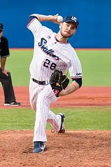 - ↑ "新外国人選手獲得のお知らせ". Tokyo Yakult Swallows (in Japanese). December 19, 2016. Retrieved December 19, 2016.