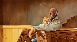 In 1967, Hanna moved with his family to Bristol, Maine. The family first resided in the Pemaquid Point Lighthouse and later in a house in the village of Round Pond.[4] A large body of work between 1968 and 1975 includes paintings and drawings such as Two Different Horizons (1971), Night Watch (1971), and Final Farewell (1975) depicting Captain Alexander Breede (d. 1971), a retired seaman.[1][9]