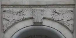 Other examples of Rubins' sculpture include the cherub that would adorn the downtown Indianapolis L. S. Ayres building during the Christmas season (now located in the Indiana State Museum[7]), the Lilly Monument at Crown Hill Cemetery in Indianapolis,[3] a number of commemorative plaques at Riley Hospital, a sculpture of Dr. Hahn that resides at the Evansville Museum of Arts, History and Science,[11] a bronze figure of a nude woman given to the IMA,[6] a marble female figure also housed at the IMA,[12] a bust of Dean John Van Nuys at the IU School of Medicine,[7] a commissioned plaque of Wilbur Peat for the IMA,[6] and the ornamental sculptures[13] over the driveway entrances of the Birch Bayh Federal Building and United States Courthouse.[3] His work has been shown at the Minneapolis Institute of Art, the Metropolitan Museum of Art by invitation, and the National Academy of Design and Architectural League.[3]