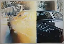 Not long after graduating from the San Francisco Art Institute in 1975, Kessler gained significant attention for his photo-realist paintings, specifically a body of work known as the "Ruined Slide Series."[2] Using damaged slides (often of family photographs or ordinary images) as the basis for airbrushed compositions, he was able to maintain the aesthetic principles of photo-realism while relying on the aberrations of the slides, such as light streaks or overexposed areas, in order to incorporate elements of abstraction into his paintings.[3] Writing in the 1980 publication Super Realist Painting & Sculpture, art historian Christine Lindey argues that Kessler's Ruined Slide Series distinguished him from other photo-realists given that "he is not concerned with the associations which photographs conjure up, nor with using them to attain distance or dislocation of context, but deals with the distortions of reality created by photographic mistakes." Writing in Art in America, critic David Tannous described the Ruined Slide Series as dealing simultaneously with "two different levels of reality: that of a 'ruined' photographic slide...and that of the 'actual scene' depicted by the slide."[4] Tannous' favorable review of his 1977 solo exhibition at Gallery 4 in Alexandria, Virginia expanded Kessler's audience beyond the Southwest, catapulting his career.[5] The Ruined Slide Series was shown in a number of venues across the United States, and later in the 2003 exhibition "Hyperrealismes USA 1965-1975" at the Strasbourg Museum of Contemporary Art in France, which featured works by Chuck Close, Malcolm Morley, and Audrey Flack as well. A review of Hyperrealismes USA 1965-1975 in Art in America identified Kessler's Light Struck Cadillac (1976–77), which shows an overexposed image of a car in a showroom, as a "gentle parody of the worshipful car paintings of John Salt, Don Eddy, and Robert Bechtle," who were also included in the show.[6]