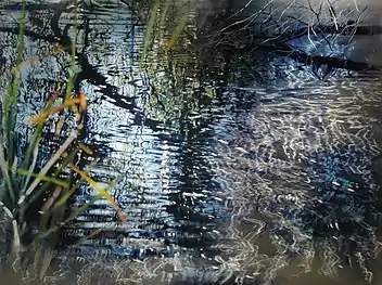 Kessler began experimenting with painting on metal during the 1990s. Focusing on scenes that are taken from close-up photographs of water surfaces, illusions of movement result from a combination of refracted light on the painting's metal surface, which is created using high-speed grinders, and then partially painted.[7] Kessler's first solo exhibition with New York's OK Harris Gallery, "Waterscapes: Paintings on Metal" featured nearly a dozen of these works.