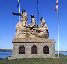 There is a monument dedicated to David Thompson (maintained by the state of North Dakota) near the former town site of the ghost town Verendrye, North Dakota, located approximately 2 miles (3.2 km) north and 1 mile (1.6 km) west of Karlsruhe, North Dakota.[33] Thompson Falls, Montana, and British Columbia's Thompson River and Thompson Falls on the Blaeberry River are also named after the explorer.[34][35]