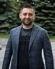 Davyd Heorhiyovych Arakhamia[lower-alpha 1] (born 23 May 1979[2]), also known by the pseudonym David Braun,[3][4] is a Russian-born Ukrainian politician and entrepreneur. He is a member of the Servant of the People political party.[5] Arakhamia was elected to the Verkhovna Rada in 2019.[6] In parliament he was elected as his party's faction leader on 29 August 2019.[7]