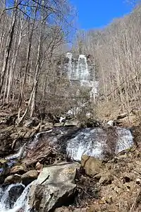 Part of Lake Lanier is in the southeastern part of the county and the boundary lines with neighboring counties pass through the lake. The 729-foot (222 m) Amicalola Falls, are located in the county. The Amicalola Falls are the highest in Georgia, the tallest cascading waterfall east of the Mississippi River, and one of the Seven Natural Wonders of Georgia. The highest point in the county is Black Mountain, with an elevation of 3,600 feet (1,100 m). The Chestatee and Etowah Rivers flow through Dawson County.