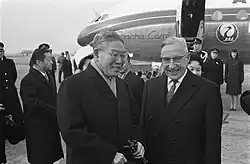 The De Quay cabinet was the executive branch of the Dutch Government from 19 May 1959 until 24 July 1963. The cabinet was formed by the christian-democratic Catholic People's Party (KVP), Anti-Revolutionary Party (ARP) and Christian Historical Union (CHU) and the conservative-liberal People's Party for Freedom and Democracy (VVD) after the election of 1959. The cabinet was a centre-right coalition and had a substantial majority in the House of Representatives with prominent Catholic politician Jan de Quay the former Queen's Commissioner of North Brabant serving as Prime Minister. Prominent Liberal politician Henk Korthals served as Deputy Prime Minister, Minister of Transport and Water Management and was given the portfolio of Suriname and Netherlands Antilles Affairs.