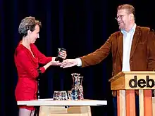 Fabian van Langevelde honours Karin Spaink as Freethinker of the Year 2015.