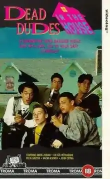 Dead Dudes in the House (also known as The Dead Come Home or The House on Tombstone Hill)[1][2] is a 1989 independent horror film written and directed by James Riffel and distributed by Troma Entertainment. The film follows a group of teenagers who travel up to a dilapidated house for some fixing up. Unbeknownst to them, the house is occupied by a murderous old woman and her sultry daughter, who proceed to pick the teens off one by one.