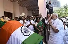 Government of India declared a one-day national mourning with the national flag in all government buildings flying at half-mast.[3][4] Government of Tamil Nadu observed a seven-day state mourning period from 6 to 12 December 2016.[5] Jayalalithaa's's lying in state took place in Rajaji Hall on 6 December 2016, during which time an estimated 1,000,000 people queued to pay their respects. It became one of the notable funerals in the world.[6]