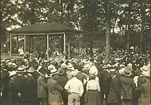Debs went to prison on April 13, 1919. While in federal prison, he was nominated for president by the Socialist Party of America in the 1920 Election for the fifth and final time despite his disfranchisement. He received 919,799 votes (3.4% of the popular vote),[1] the most ever for a Socialist Party presidential candidate in the U.S. It was slightly more than his 900,672 total in the 1912 election,[1] which had equaled six percent of the popular vote. (National women's suffrage in 1920 greatly increased the total number of votes cast.)
