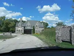 In 1906 the Delafield Fish Hatchery was established - the second hatchery in this state system.[4] Two bass-rearing ponds were built that first year. Four more were built the following year, along with the stylish stone building that survives today. J.T.W. Jennings designed the building in Tudor Revival style, with a steep hip roof, prominent chimney, parapets above the dormers, and walls of colorful fieldstone. It contained offices and two walleye tanks. The hatchery drew its water from Nagawicka Lake.[1]