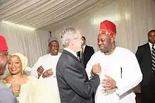 Chief Dele Momodu (born Ayòbámidélé Àbáyòmí Ojútelégàn Àjàní Momodu; 16 May 1960) is a Nigerian journalist/publisher, businessman, and motivational speaker. He is the CEO and publisher of Ovation International, a magazine that has given publicity to people from all over the world, mainly in Africa.[1] In 2015, he officially launched Ovation TV and subsequently launched an online newspaper called The Boss Newspapers.[2] Momodu has received hundreds of awards and honors for his work in the world of business, politics, literature, the music industry and the fashion industry.[3][2] He writes a weekly column called "Pendulum", published every Saturday on the back page of Thisday newspaper. The articles are praised for highlighting issues in Nigeria, as well as discussing popular topics, current events and notable people, often in a polemic/critical style. ,