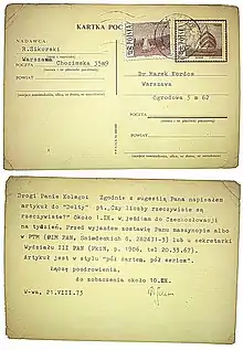 The response of prof. Roman Sikorski to the order request of the first article in Delta, 1973.