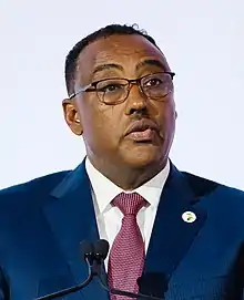 Demeke Mekonnen Hassen (Amharic: ደመቀ መኮንን ሐሰን; born 27 September 1963) is an Ethiopian politician, serving as the deputy prime minister of Ethiopia, Minister of Foreign Affairs, and vice-president of the Prosperity Party. He previously served as chairman of the Amhara Democratic Party (ADP) and deputy chair of the Ethiopian People's Revolutionary Democratic Front (EPRDF) until the dissolution of the two in December 2019.