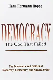 Democracy: The God That Failed is a 2001 book by Hans-Hermann Hoppe containing thirteen essays on democracy. Passages in the book oppose universal suffrage and favor "natural elites".[1] The book helped popularize Hoppe on the far-right.[1][2]
