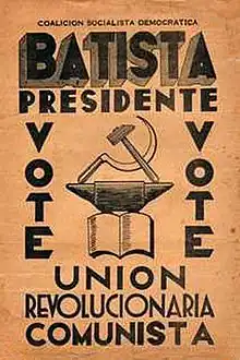 The party was founded in 1939, and served for the 1940 general elections, won by Batista. The founding parties and members were four: the Liberal Party (liberal), the Nationalist Union Party (conservative), the Communist Revolutionary Union (communist), and the Democratic National Association (conservative).
