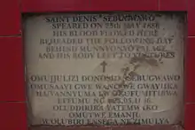 2. 1 2 3 4 "St. Denis Ssebuggwaawo". Munyonyo Martyrs' Shrine. 27 February 2018. Retrieved 25 May 2020.