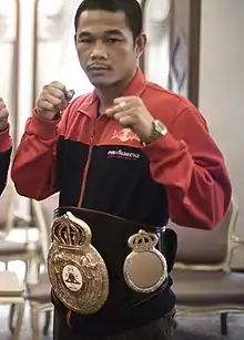 Denkaosan Kaovichit a.k.a. Denkaosan Redbull Gym. a.k.a. Denkaosan Singwangcha (Thai: เด่นเก้าแสน เก้าวิชิต, เด่นเก้าแสนกระทิงยิม, เด่นเก้าแสน สิงห์วังชา; born, August 23, 1976) is a professional boxer from Thailand, the interim WBA Super Flyweight World champion and former WBA Flyweight World champion.[1] He is also a Muslim.