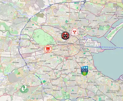 Sometimes considered the most placid rivalry between the big four, both clubs originally played in the Phoenix Park but quickly moved to nearby Phibsboro and Inchicore. The two had rarely been competitive for the title at the same times as each other until the 2020's and both see Shamrock Rovers and Shelbourne as more important rivals. The clubs met in the 2021 FAI Cup Final which St Patrick's Athletic won on penalties amidst pre match crowd trouble in Irishtown.[6][7] The two met again in the 2023 FAI Cup Final which again saw the Saints lift the trophy, after a 3–1 victory in front of a record domestic crowd of 43,881.[8]