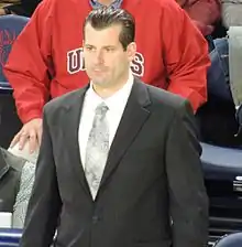 Derek William Kellogg (born June 20, 1973) is an American college basketball coach who currently serves as an assistant coach for Creighton. Kellogg previously served as head coach of the Massachusetts Minutemen, his alma mater,[1] being named to the position on April 23, 2008, replacing Travis Ford, who left to take the head coaching job at Oklahoma State University. He was removed from the position on March 9, 2017.[2] After being let go by the Minutemen, he was named head coach of the LIU Brooklyn Blackbirds, which represented the school's Brooklyn campus.[3] He was named the first head coach of the current LIU team upon its formation in July 2019 when LIU merged the Brooklyn athletic program with that of its Post campus, creating a new program that now competes as the LIU Sharks, and served in that role until he was fired and replaced by Rod Strickland on June 30, 2022.[4] After his firing from LIU, Kellogg returned to his alma mater UMass as an assistant coach for one season before leaving for Creighton in 2023.