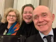From left: Eva Wagner-Pasquier and Katharina Wagner with Derek Williams, Scottish delegate at the 2019 RWVI Congress in Venice.