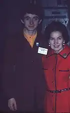 Williams (L) age 19 in Auckland University Festival Choir uniform by Colin Cole[29] with friend after the choir's Lincoln Center performance (26 April 1972).