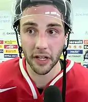 After three seasons with the Rangers, Brassard was the team's first offseason move in 2016, when he was traded to the Ottawa Senators on July 18 in exchange for Mika Zibanejad, who was "younger and faster" than Brassard.[100] Although both teams had discussed the details of the trade earlier, Ottawa general manager Pierre Dorion wanted to wait until after July 15 to sign off on the deal, as it forced the Rangers to retain Brassard's $2 million signing bonus.[101] Brassard joined the second line on his new team, serving as a left-handed skater to counterbalance first- and third-line centers Kyle Turris and Jean-Gabriel Pageau.[102] He opened the 2016–17 season in a scoring slump: his only goal in the first 15 games of the year came in the season opener, although he had an additional five assists in that same span.[103] He told reporters that it took "a while to adjust" to the new team, particularly coach Guy Boucher's affinity for changing offensive lines every game, but Brassard managed to finish the regular season with 14 goals and 39 points in 80 games.[104] The Senators clinched a spot in the 2017 Stanley Cup playoffs, and Brassard recorded an additional eight points in their first-round victory over the Boston Bruins.[104] Ottawa faced the Rangers in the second round of playoffs, and Brassard scored against his old team in the 3–1 series-clinching victory.[105] Altogether, Brassard had 11 points in 19 postseason games before Ottawa was ousted by the Pittsburgh Penguins in the Eastern Conference finals.[106][107]