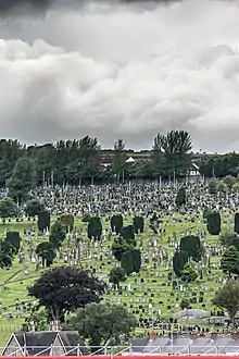 The cemetery is also rapidly approaching capacity, despite the opening of a new section on the lower part of the cemetery. As of March 2020 the council stated that there are approximately 650 plots that remain available,[4] and that the cemetery is expected to reach capacity by 2025, although it will remain open to secondary burials until 2043.[5]