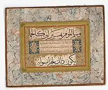 7. Derman, Metropolitan Museum of Art. M. Uğur (1998). Letters in gold : Ottoman calligraphy from the Sakıp Sabancı collection, Istanbul; [in conjunction with the Exhibition Letters in Gold: Ottoman Calligraphy from the Sakıp Sabancı Collection, Istanbul; held at The Metropolitan Museum of Art, New York, Sept. 11, 1998 - Dec. 13, 1998; at the Los Angeles County Museum of Art, Febr. 25, 1999 - May 17, 1999; and at the Arthur M. Sackler Museum, Harvard University Art Museums, Cambridge, Mass., Oct. 9, 1999 - Jan. 2, 2000]. New York: Abrams. p. 64. ISBN 0870998730.